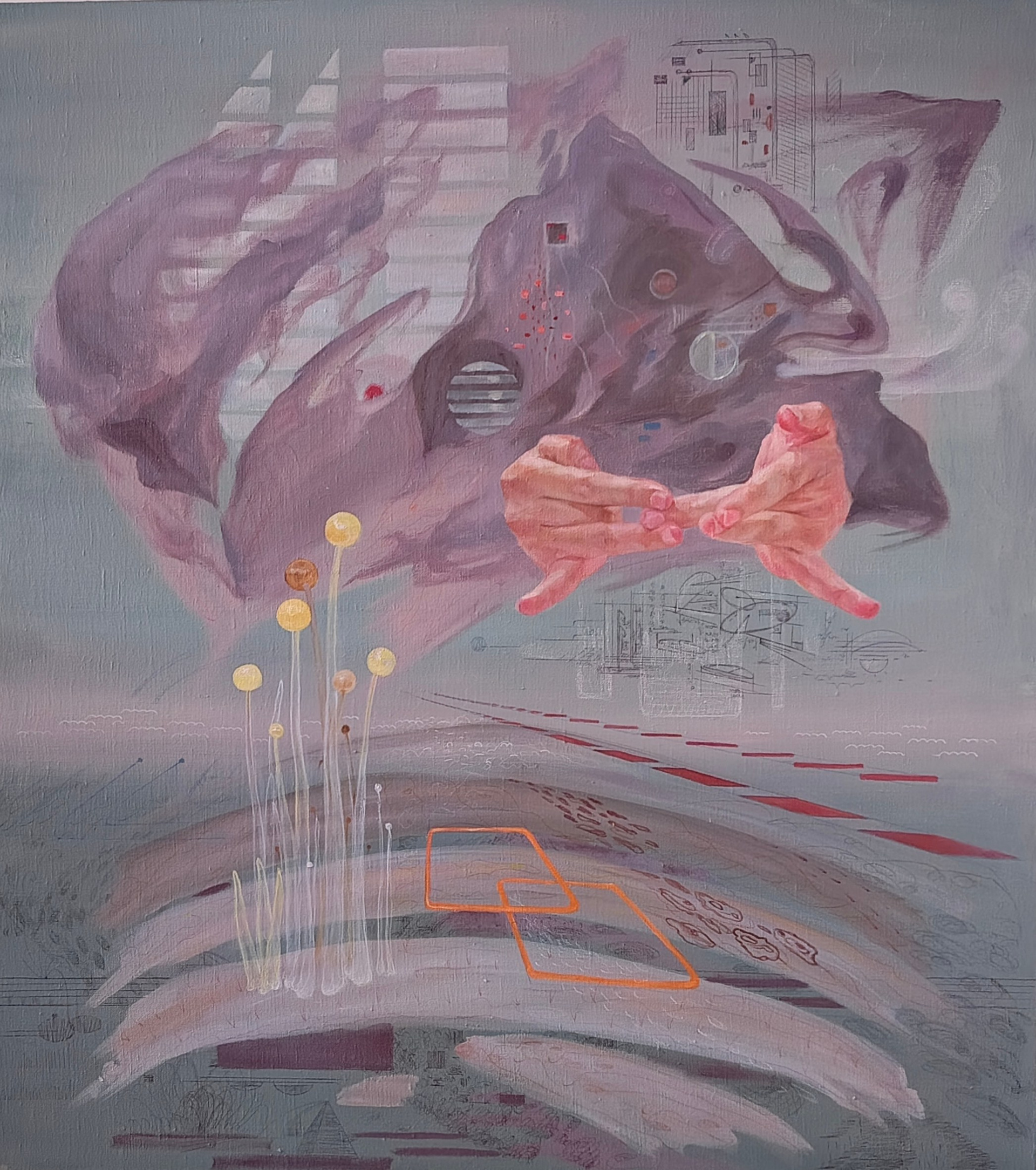 В последние 2 года, по приезде в Беларусь, меня интересуют более фантазийные темы, за гранью телесной чувственности, без или с минимальным применением реализма. Моя трансформация сознания, обусловленная повсеместным внедрением ИИ, отразилась на образном мышлении. Так родилась концепция, которую я назвала — «Альтернативные реальность».